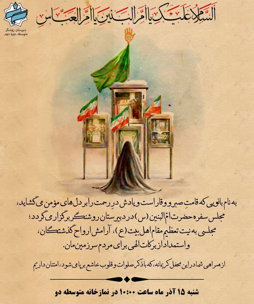 برگزاری نخستین سفره حضرت امالبنین(س) – شنبه15آذر ماه 1404متوسطه دوم روشنگر
