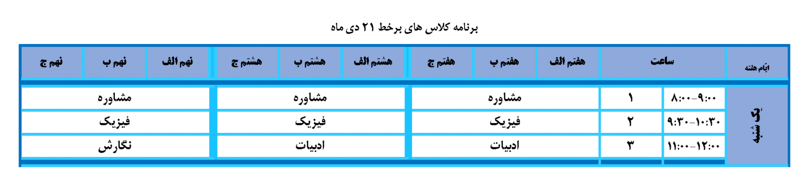 بدینوسیله برنامه برنامه و لینک اتصال به کلاسهای آنلاین روز یکشبه 21 دی خدمت شما ارائه میشود.