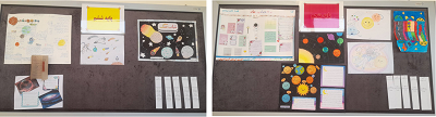 در ادامه، دانش‌آموزان با مطالعه 📚 کتاب‌هایی درباره فضا و شگفتی‌های آن، خلاصه و معرفی آثار خود را در قالب پوسترهای زیبا 🎨 ارائه کردند.